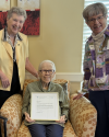 Recently, Chicago-area Sisters celebrated the decades of love and care shown by alumna Marge Carroll toward our congregation. Margaret Carroll, Academy of Our Lady (AOL) graduate of 1954, served as Moderator/President of the AOL Alumnae Association from 1970 to 2025, when all records were sent to the SSND Archives in Milwaukee.