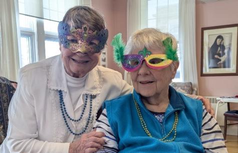 On Tuesday, March 4th, Associates Mary Anne O’Donnell, Cathy Schoonover, Lisa Benson, and Madelyn Ball came to Stella Maris to celebrate Mardis Gras with us. It was a perfect Mardi Gras celebration. Many thanks to our new friends who provided us with a wonderful morning!