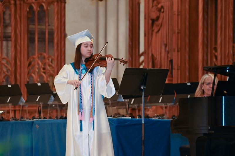 Caroline Dupas of Pearl River, New York, graduated First in Merit and was named commencement speaker, the highest honor AHA can confer upon a graduate. Giovanna Corbisiero of Franklin Lakes finished Second in Merit, and Shivani Sahu of Paramus was chosen by her peers to deliver the senior response. AHA’s alumna speaker was Katherine Polk Failla, J.D. (AHA ’87). Faith Youn of Closter played the violin solo during the
