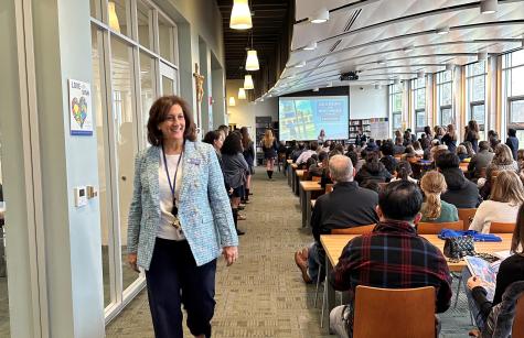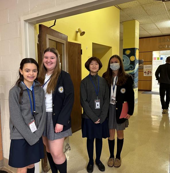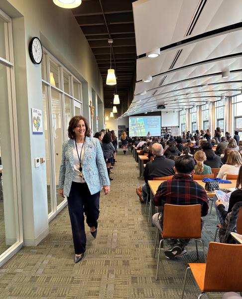 Prospective sixth graders and their families gathered in the Learning Commons, where they learned about the benefits of an all-girl education, how AHA students and alumnae are encouraged to use their education to transform the world, and a brief history of the School Sisters of Notre Dame, who founded and sponsor the Academy. Speakers included AHA President Melinda Hanlon, AHA Middle School Dean Traci Koval, Director of Mission & Ministry Joan Connelly, Academic Counselor Michael Statile, and Admissions Director Michèle McGovern.