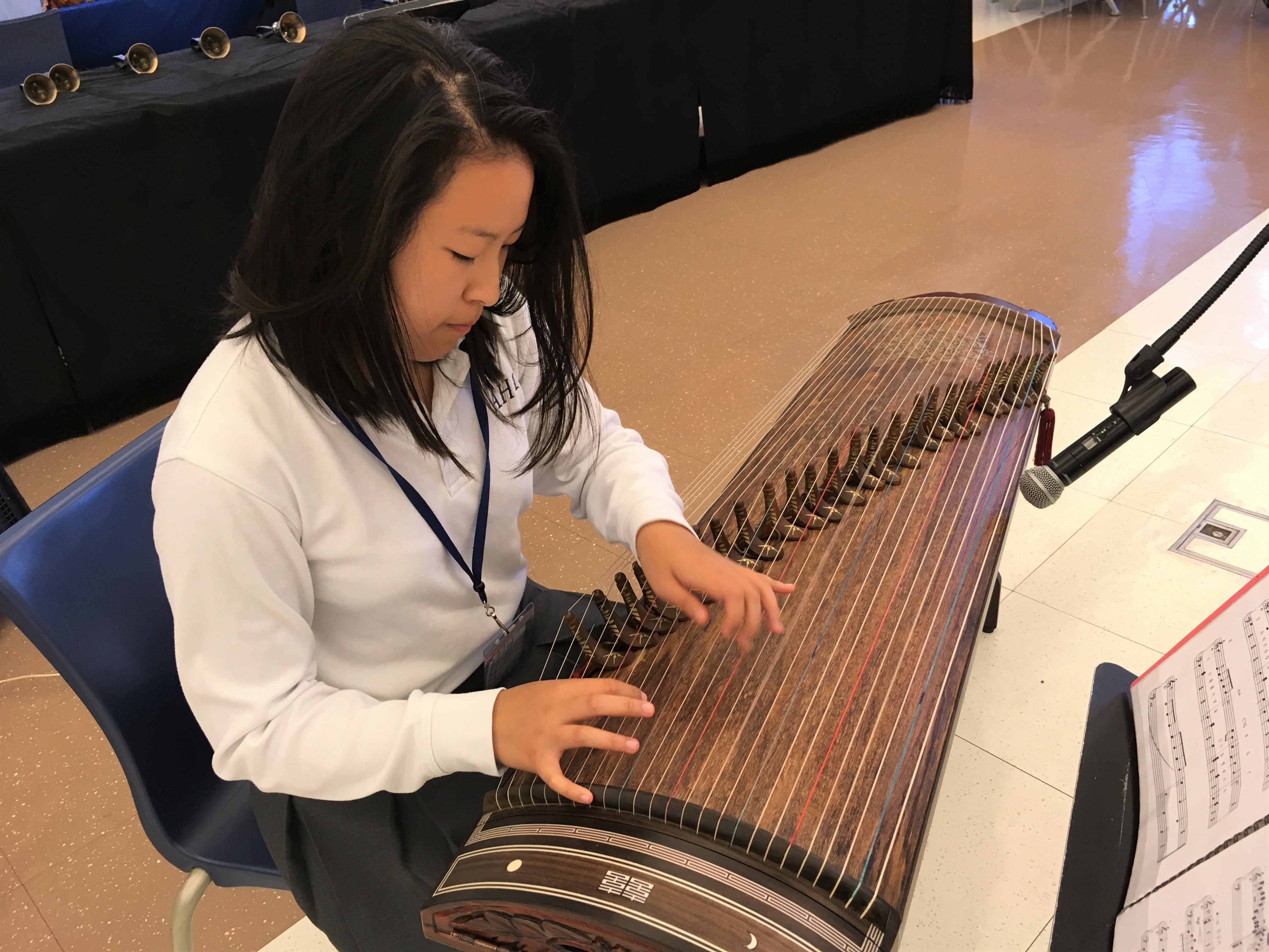 At Holy Angels, Choi studies with Instrumental Music Director Mariann Annecchino. Choi plays gayageum in the Academy Orchestra and adapts the parts for her instrument, so she is an integral member of the ensemble.