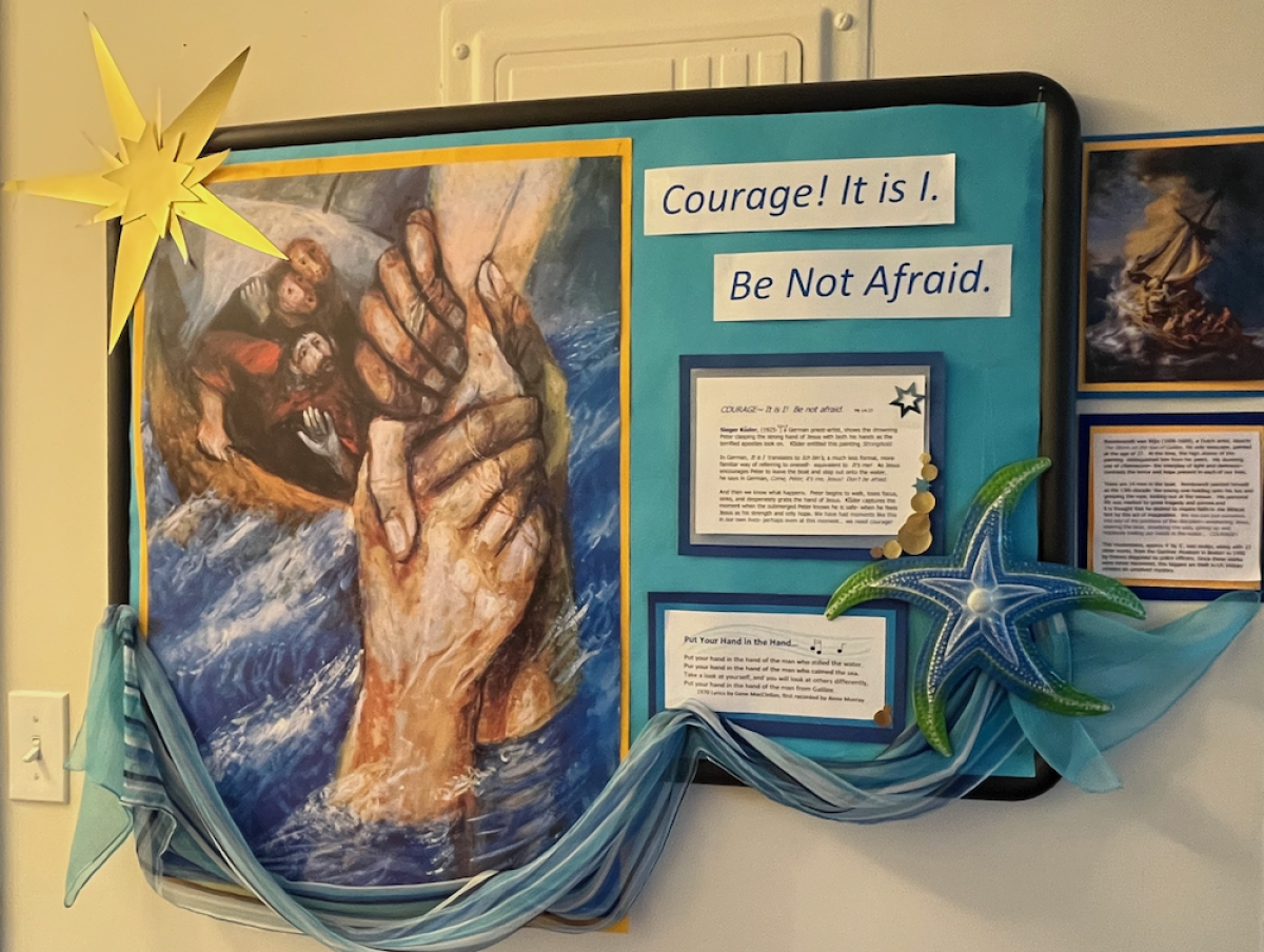 Our August board in Bridgeport shares this message from Matthew 14:27: Courage! It is I! Be not afraid.