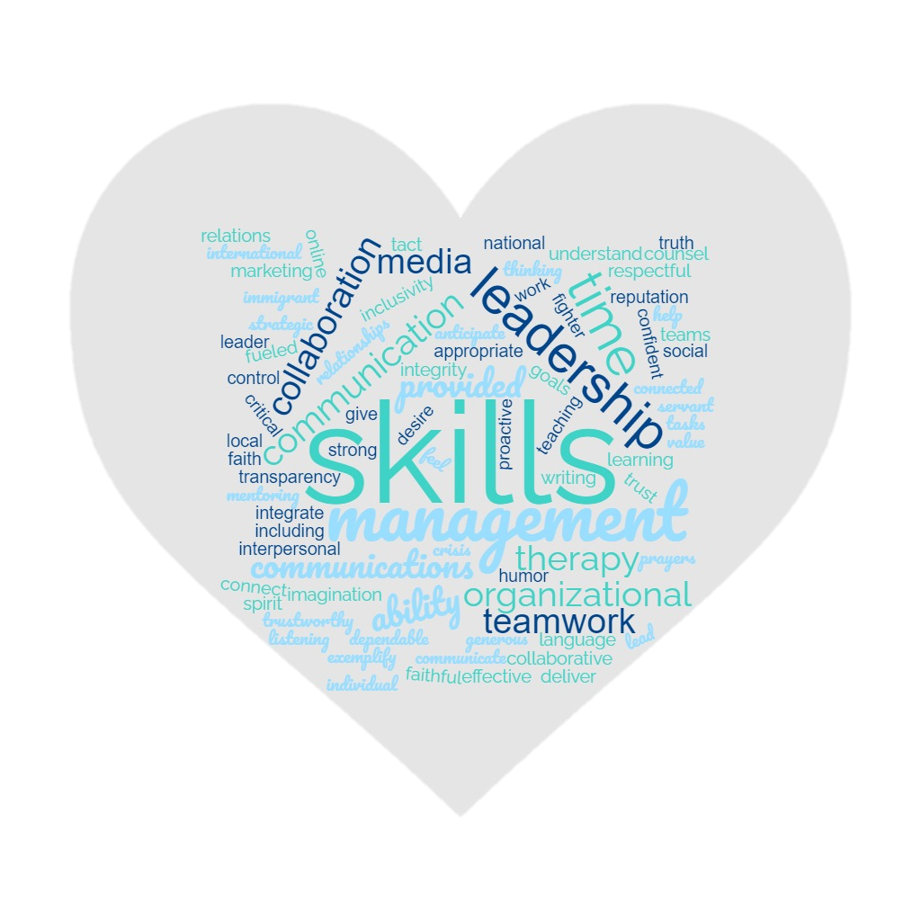 Leaders explored what skills they bring to their respective roles and places of ministry. Cary created an image of a heart (above) to visualize the diverse skills of the leaders. Anne emphasized that leadership is about meeting people where they are at and people won’t know what it means to be a leader until they go out and be one. Carol told a story and invited the participants to reflect on how they see themselves as a leader – as one laying bricks, building a wall, or building a cathedral.