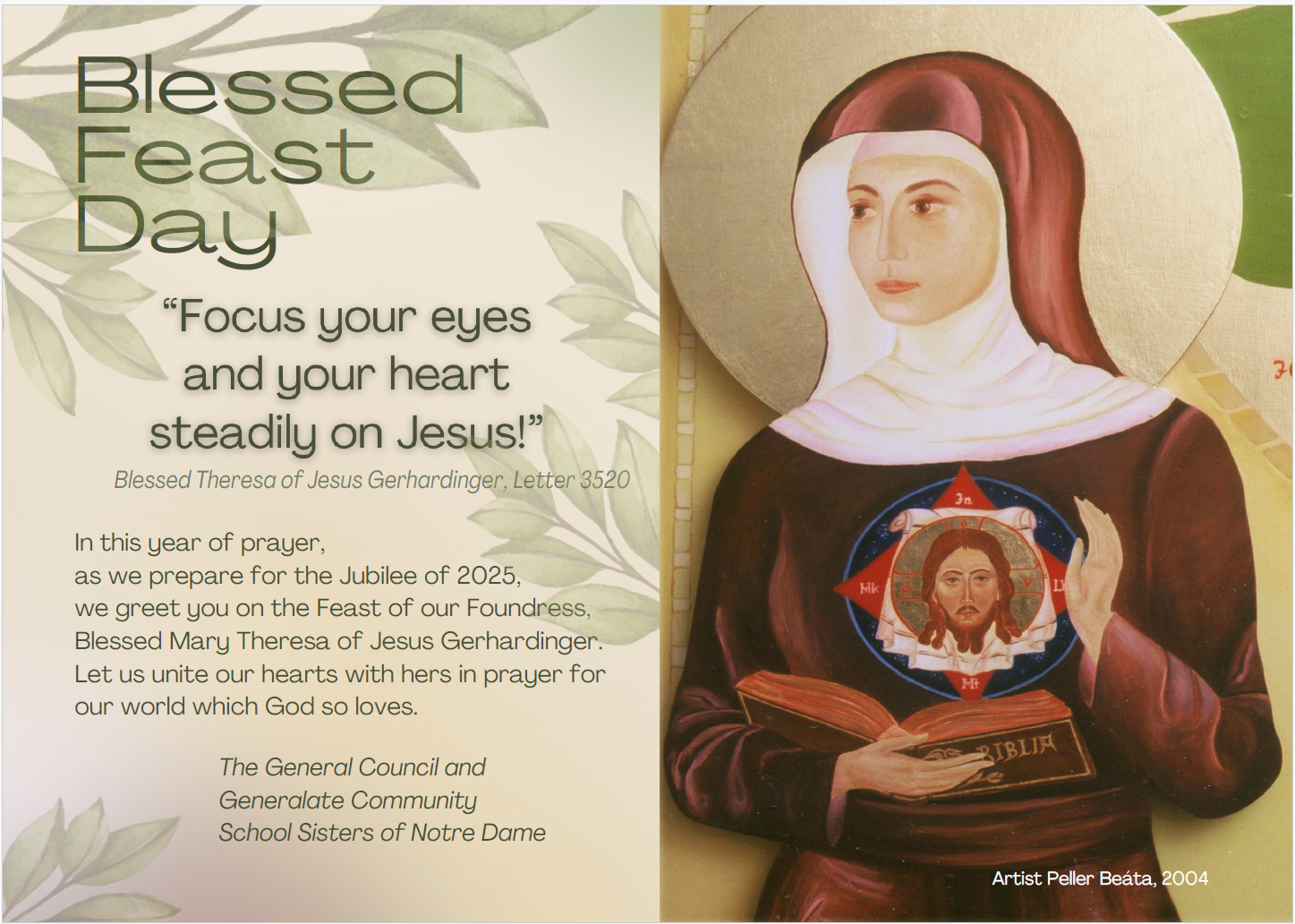 Please join us on May 9th for a prayer service live from Blessed Mother Theresa's tomb in Munich, Germany, beginning at 1:00 EST (7:00 pm Munich time). It will last approximately 20 minutes. It will be recorded and will be available at Gerhardinger.org afterward. Get more information at: https://gerhardinger.org/blessed-feast-day/