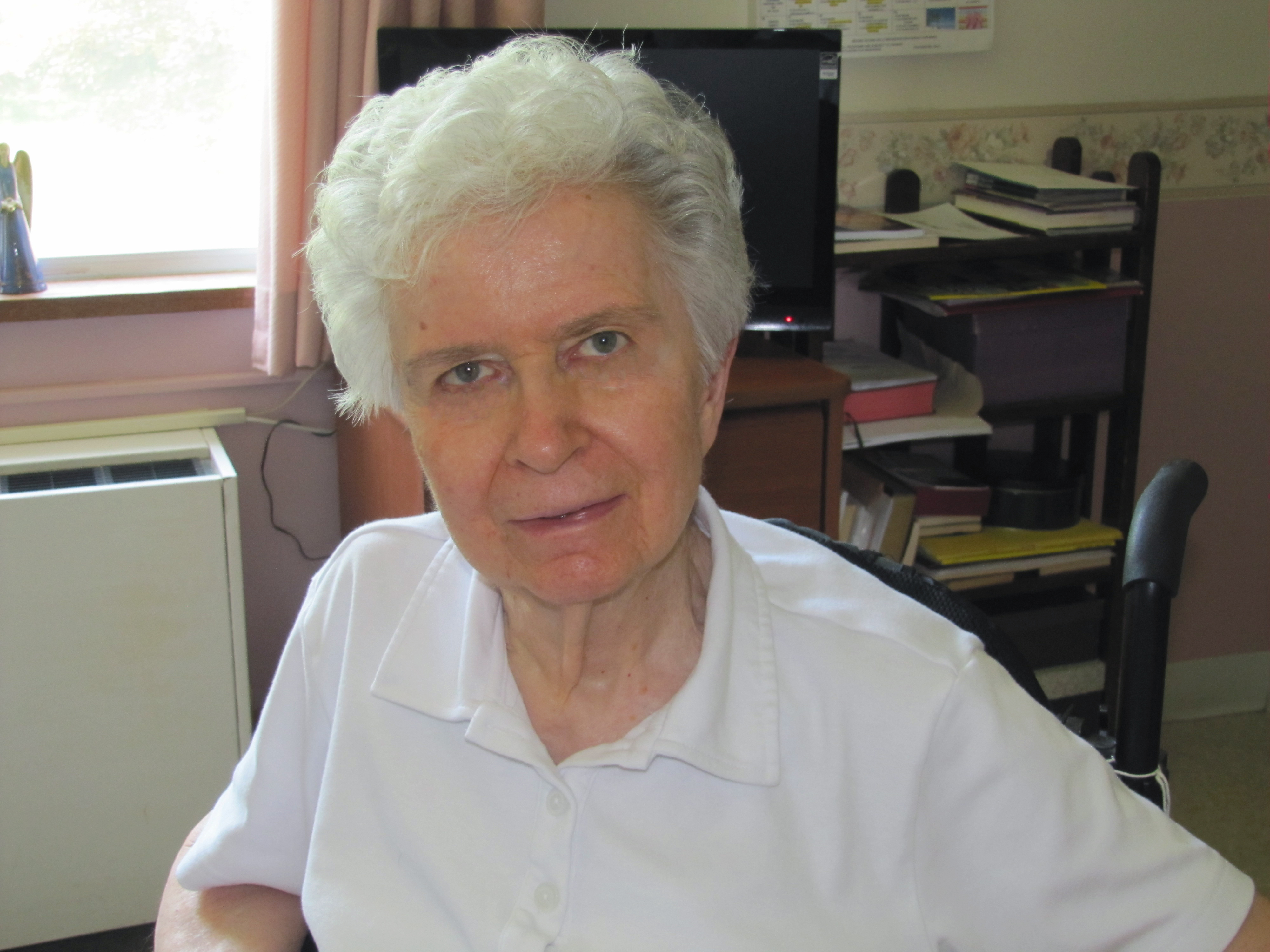 and after some years in the Motherhouse community, she became a resident of Lourdes. She described her life there this way, “I gather most evenings with a group for evening prayer and enjoy a variety of activities, including Scrabble, and musical entertainment. I like reading and especially look forward to our spiritual book club. It enables me to join with other Sisters in discussion, sharing and deepening our spiritual experiences.”