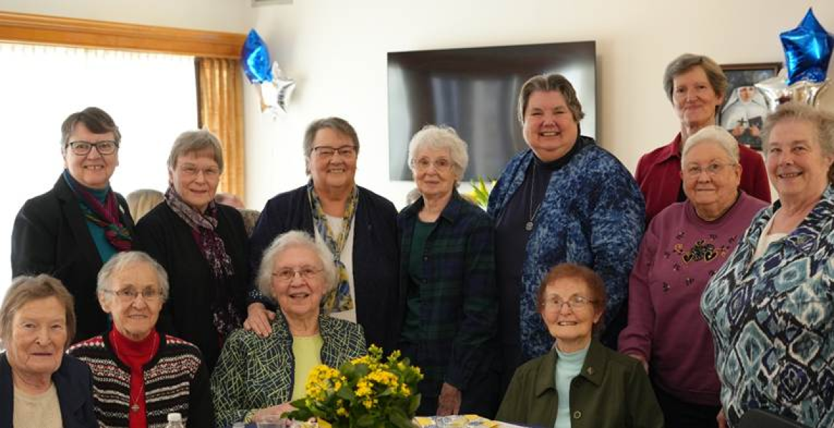 Back Row, L-R: Sisters Jane Cayer, Linda Kremer, Deborah Cerullo, Jeanne Hildenbrand, Patricia McCarron, Madelyn Keller, James Brian Schammel, Kathleen Jager Front Row, L-R; Sisters Margaret Mahoney, Joanne Maura Muñoz, Bernice Feilinger, Eileen Eppig