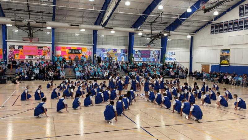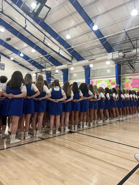 Students at Notre Dame Preparatory School competed in the decades long tradition of Gym Meet over the weekend of March 3-4. Freshmen, Sophomores, Juniors, and Seniors marched, sang, danced, and aerobicized their way through two nights of competition and performance for parents and loved ones.