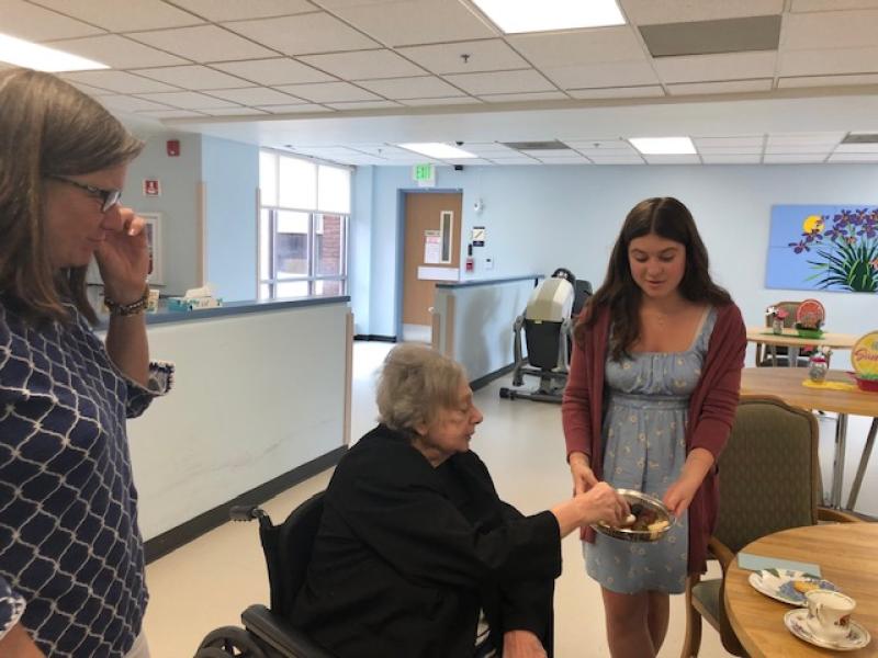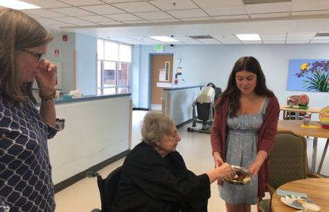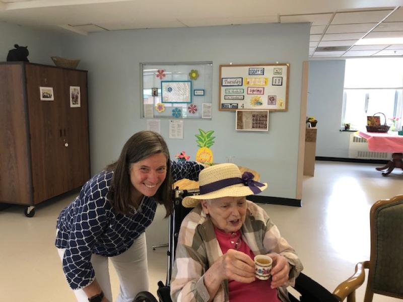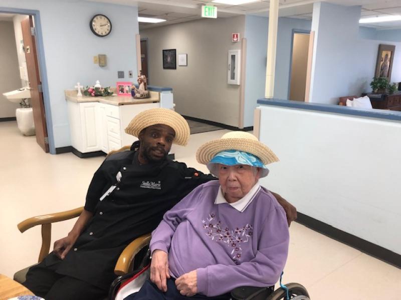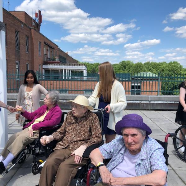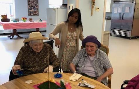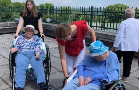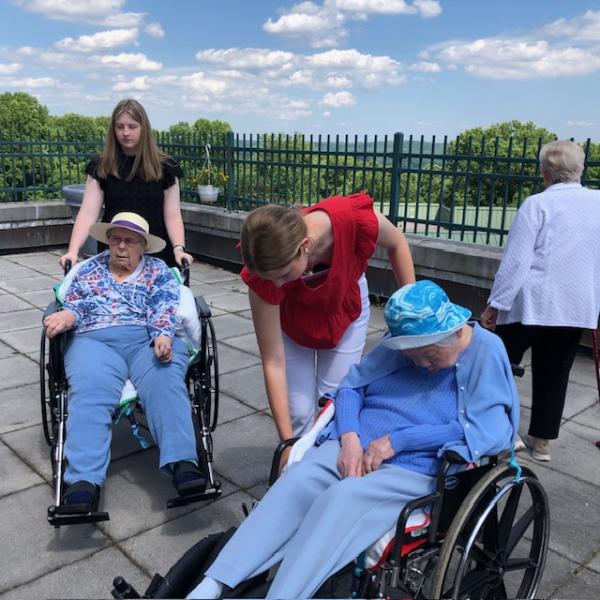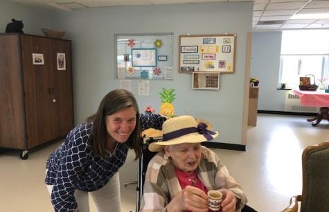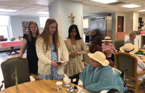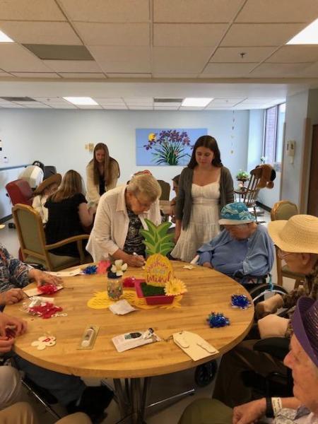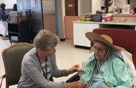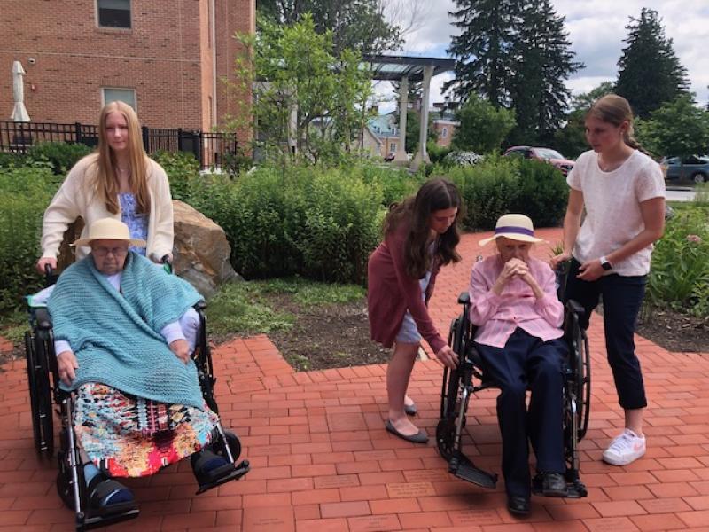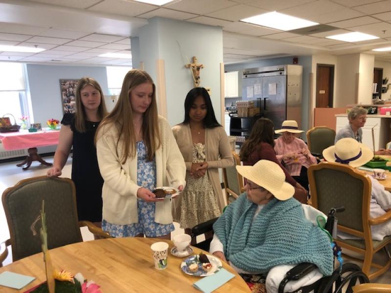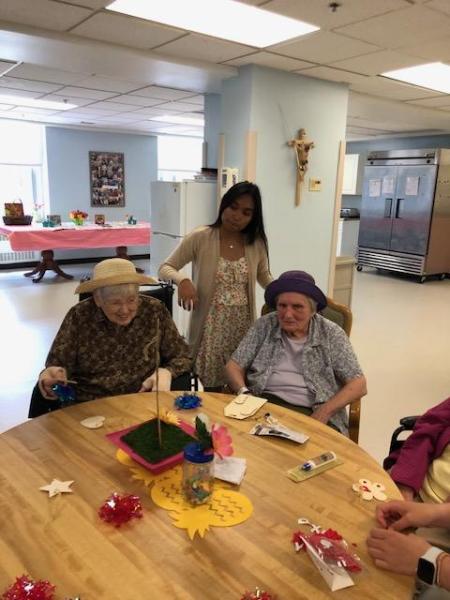 NDP graduate Carolyn Gugerty Hrdlick is a nurse who brought students to Stella Maris last week. Five NDP students who are interested in being nurses visited our Sisters on Two South for two afternoons.