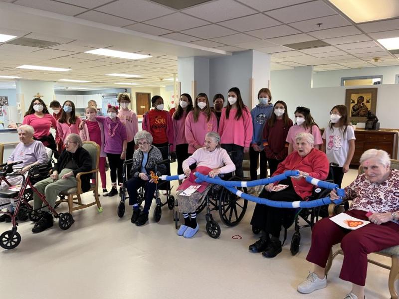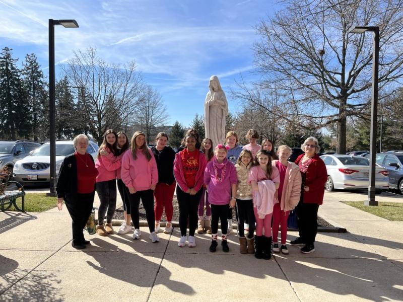 On Valentine’s Day, Tuesday February 14, the Sisters at Stella Maris were delighted with a visit from the NDP Middle Level student campus ministers.