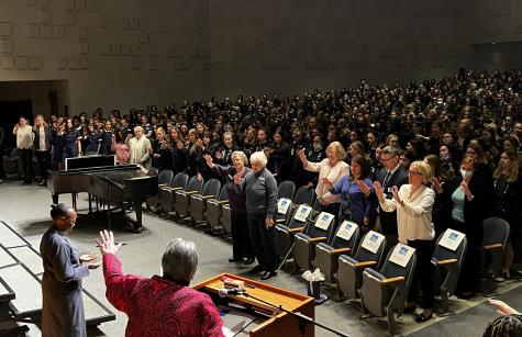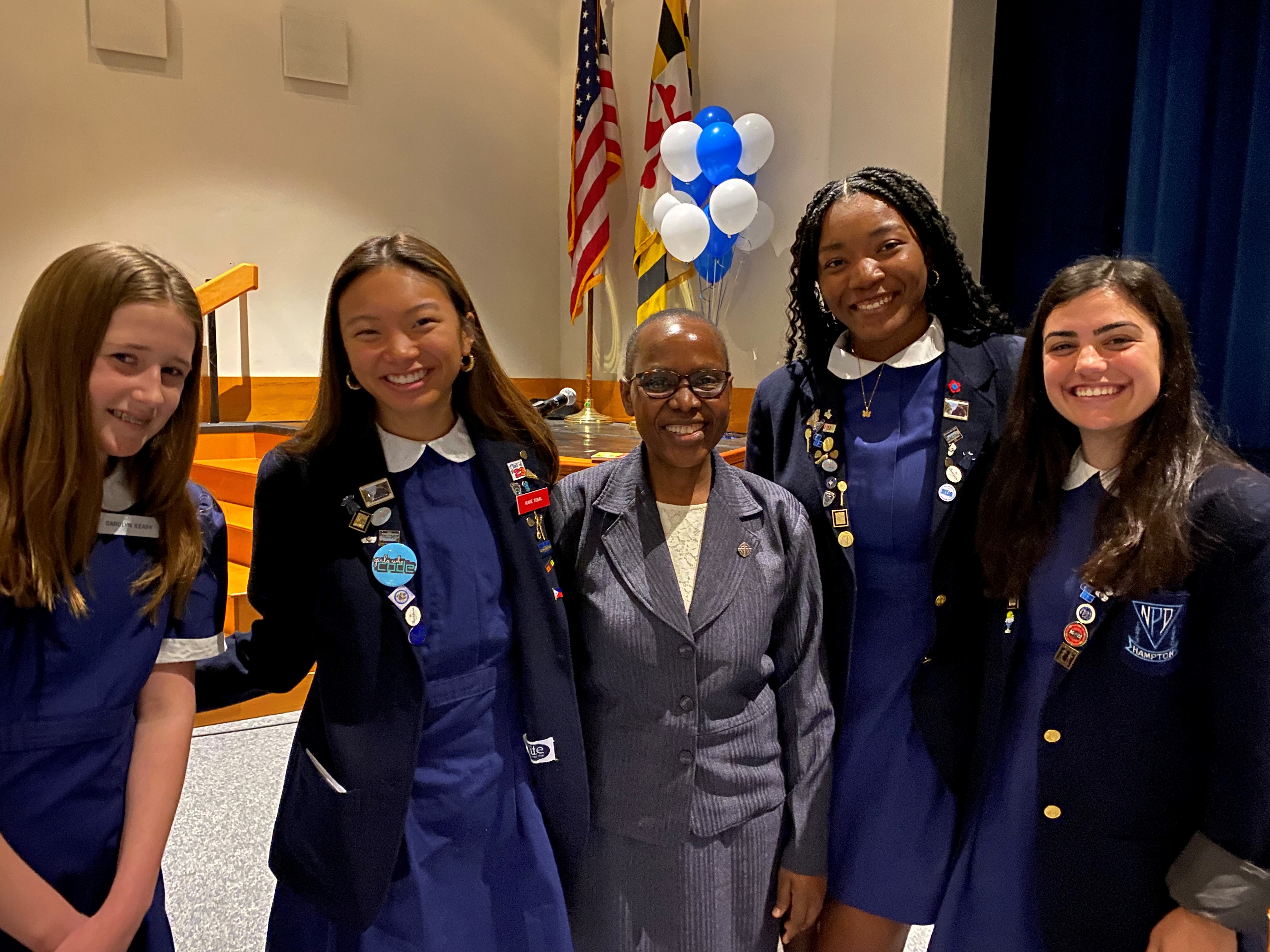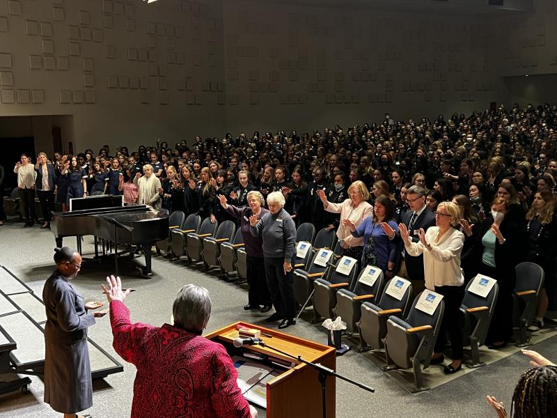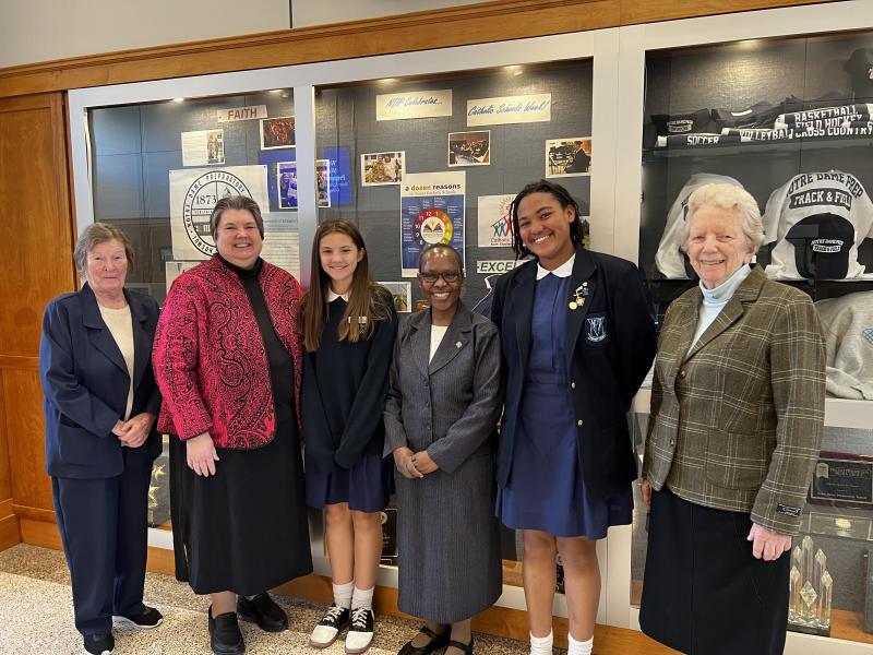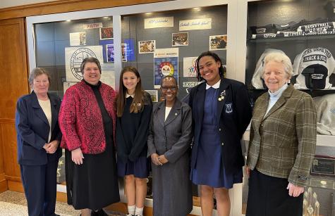 The Notre Dame Preparatory School community was thrilled to welcome General Council member Sister Carolyn Anyega, SSND, to the school on Monday, April 11. Sister Carolyn spent the morning attending an all-school assembly, praying with our students, faculty, staff and administration, and visiting classrooms, including NDP’s new Innovation Wing.