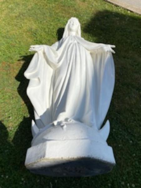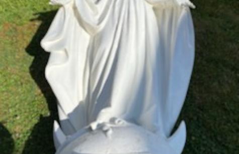 As Mary and the cross lay on the lawn outside the convent doors awaiting transportation to their new home at Gate of Heaven Cemetery, the wind blew, the cranes quieted and silence reigned. Now Mary will stand to welcome and light the path for our Sisters who have made their final journey home to God.