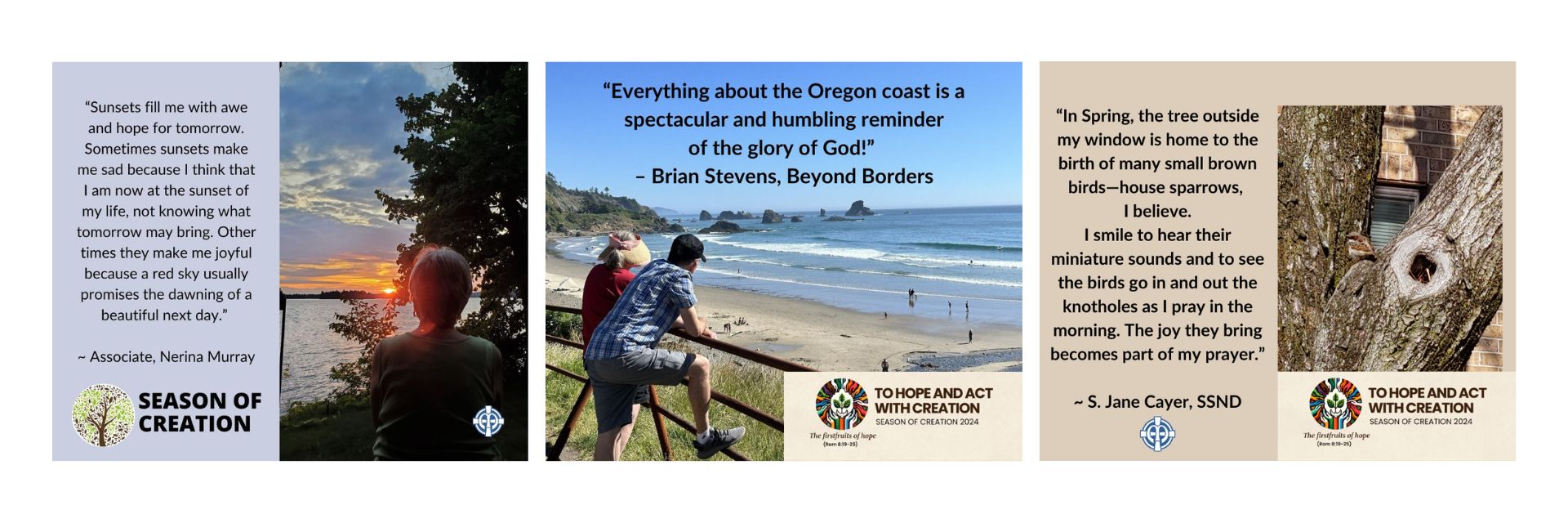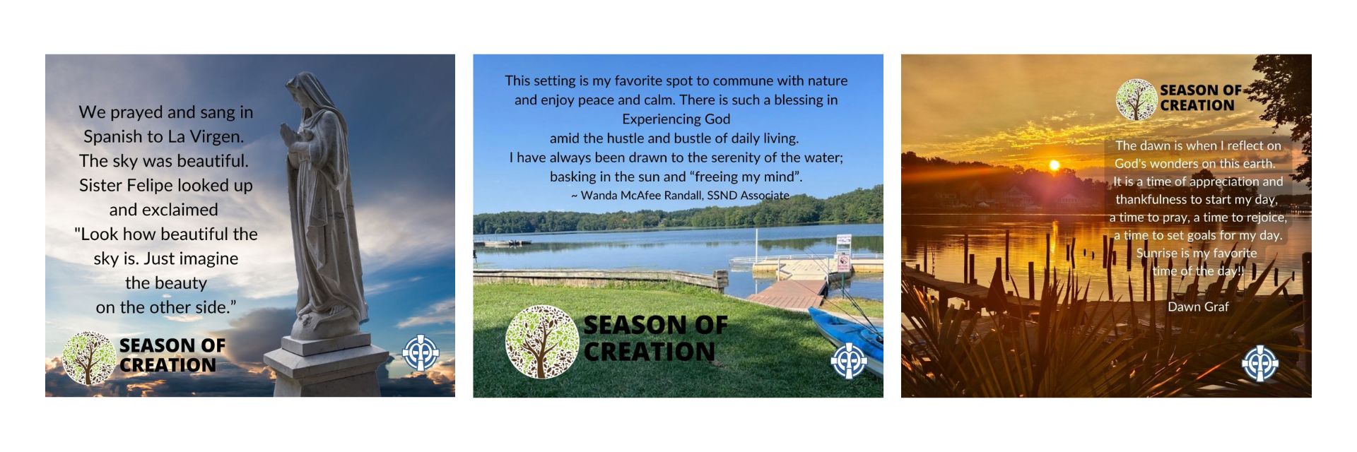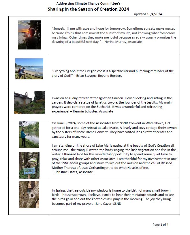 Click here to see a flyer of all Season of Creation photo contributions from our SSNDs, Associates, and Colleagues."