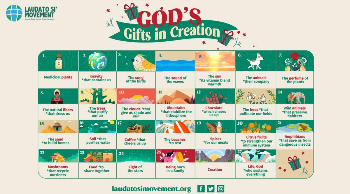 Take time during this month to be aware of the sights and sounds and smells and tastes of this splendid universal communion. Ecological conversion begins with such awareness, and ongoing awareness takes us deeper into the mystery of the Incarnation. Emmanuel, God with us.