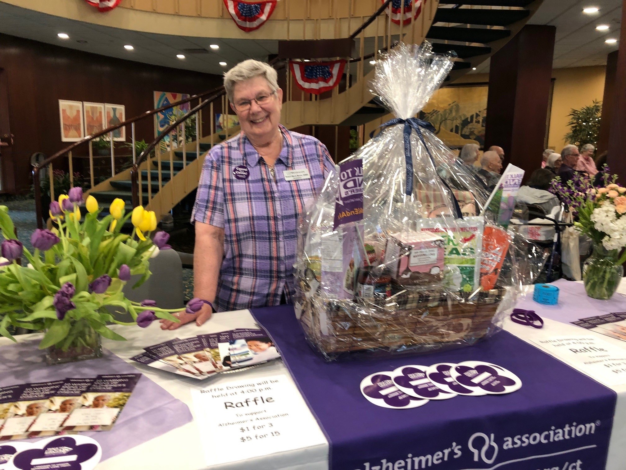 Sister Maureen and Sister Robert Moser helped staff member Lisa Denaro sell raffle tickets in the lobby for a huge gift basket full of treats, with the money going to the Alzheimer's Association.