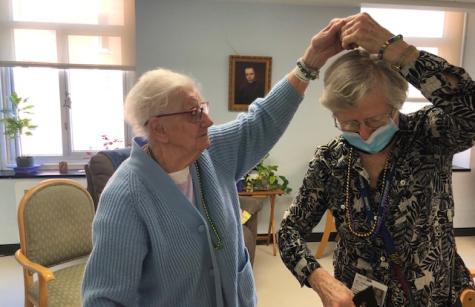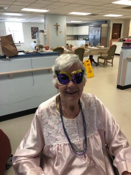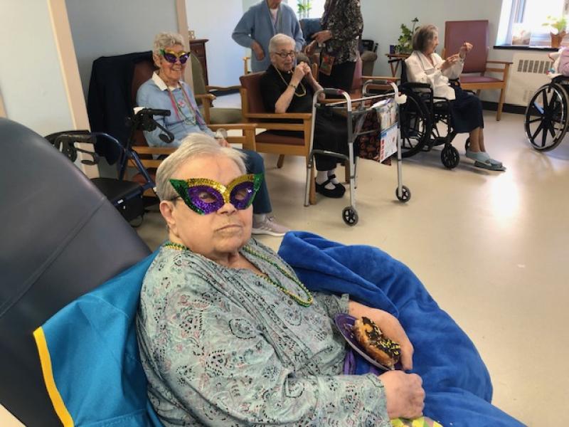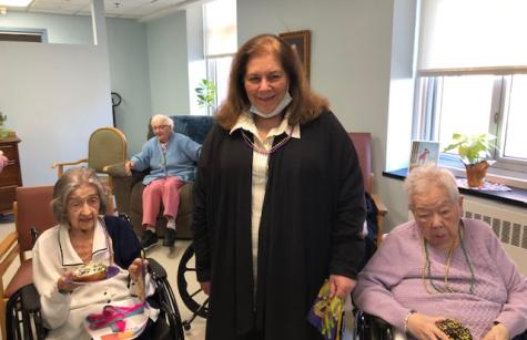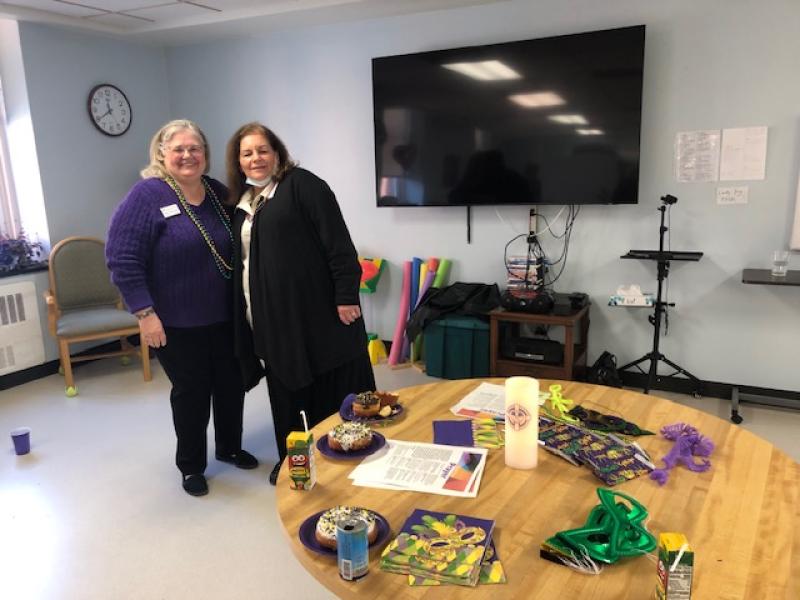 On Tuesday, March 4th, Associates Mary Anne O’Donnell, Cathy Schoonover, Lisa Benson, and Madelyn Ball came to Stella Maris to celebrate Mardis Gras with us.