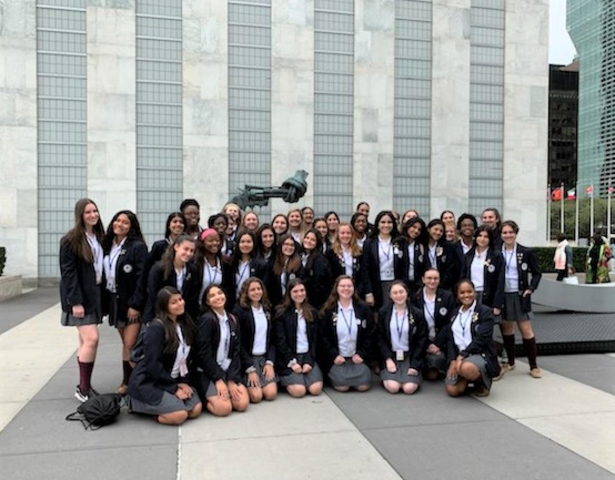 Sister Beatriz Martinez-Garcia, SSND, director of the School Sisters of Notre Dame’s United Nations Non-governmental Organization Office, arranged for 40 AHA students to attend the Eighth Annual International Day of the Girl. Held at the United Nations in New York City, this event celebrates young female leaders and promotes activism to support the rights of girls throughout the world.