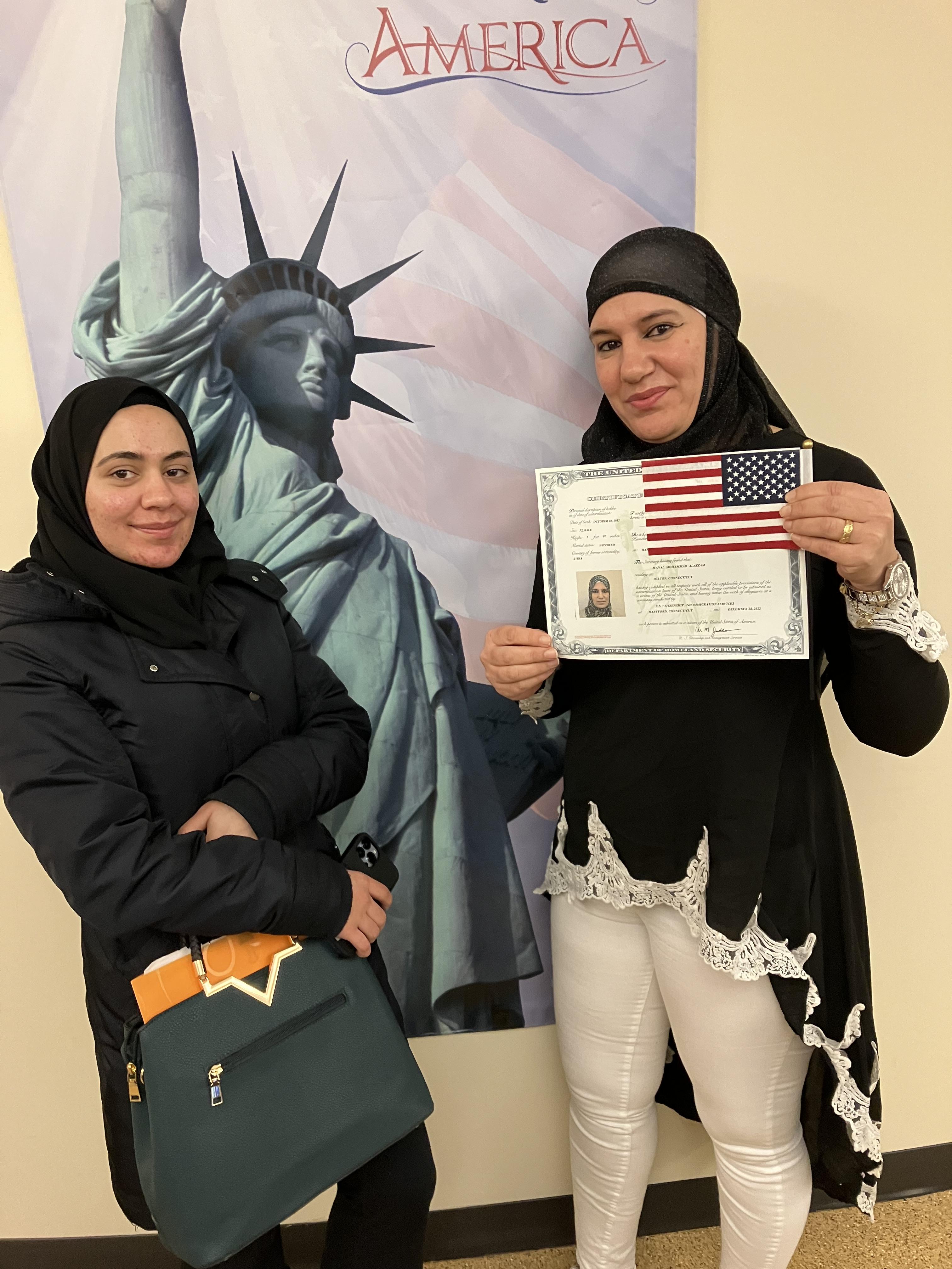Minor children at the time of their parent’s naturalization (such as Bisan and all but one of Manal’s four other children) automatically qualify for U.S. citizenship under the provisions of the Child Citizenship Act of 2001, following the filing of USCIS Form 600 on their behalf; that process usually takes about six months. Manal’s next steps for herself will be to register to vote and to secure a passport and new Social Security card.