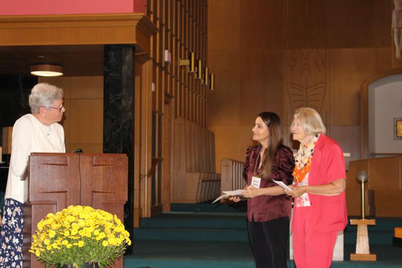 We welcomed our new Associate, Natalie Lorimer, who made her First Covenant. She was introduced by Catherine Heffernan who companioned her on her journey to become an Associate. Sister Debbie presented Natalie with an Associate pin, a candle, and the book “Trust and Dare".