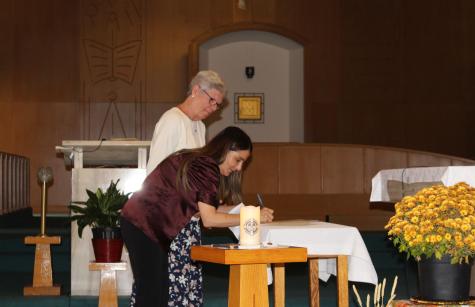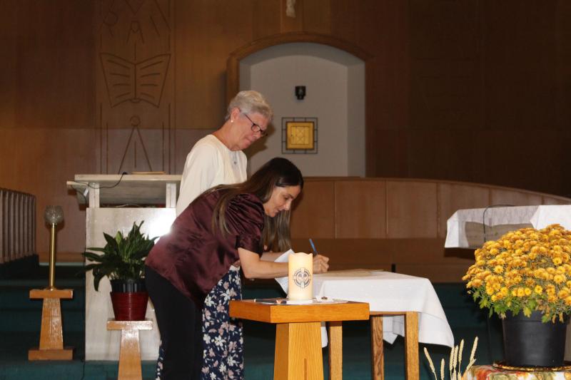 The celebration began with the entrance hymn, “Here I Am Lord”, accompanied by Associate Deirdre Pike. At the end of the Covenanting ceremony, we closed with the hymn “How Great Thou Art”. We gathered together for a group picture as well.
