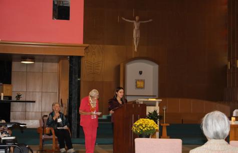 Sister Delia Calis started the celebration with the Indigenous Land Acknowledgement, and Sister Debbie gave an interesting talk on the charism of the School Sisters of Notre Dame called “Grit, Grace and Go”.