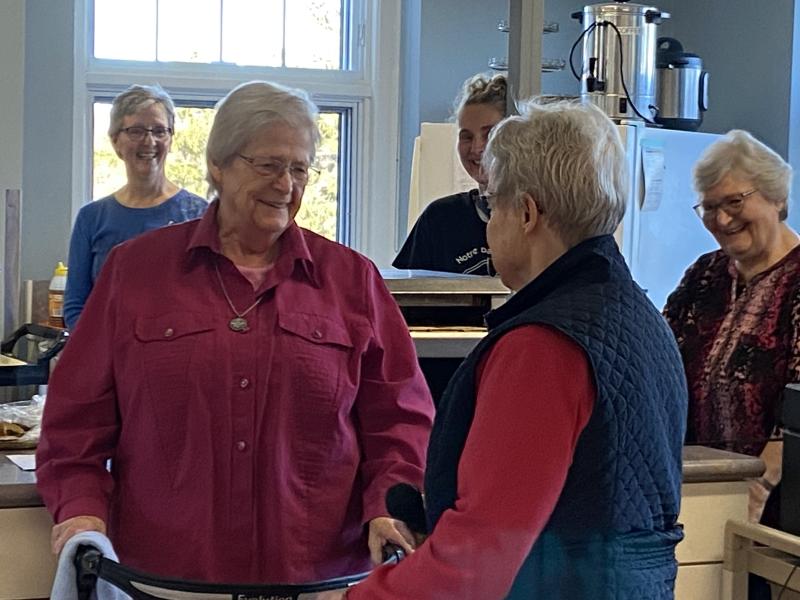 At last, we were over Covid. We could gather again and we had plans. We were going to celebrate Sisters Maureen McGoey and Delia Calis as they ended their term of leadership at SSND Waterdown!