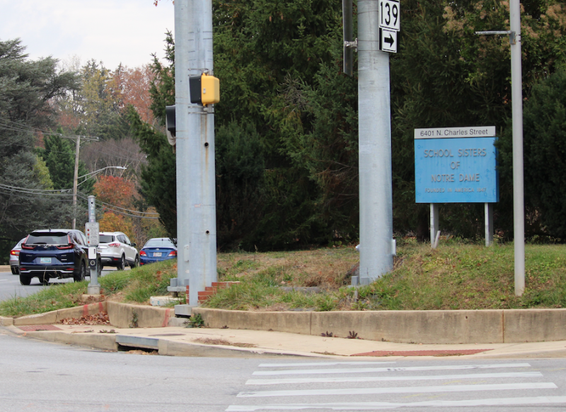 Then, on the way back up Charles Street, I’d look over to the right to see that small, weathered, blue and barely-there sign with “School Sisters of Notre Dame” inscribed on it.