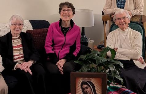 Sisters at Charlesgate Apartments practice community prayer all together. Typically, all 19 sisters from nine different buildings gather at one of the apartments for our monthly Solidarity Prayer. We take turns hosting the prayer.